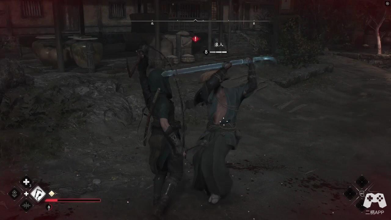 双主角的设计智慧在装备和战斗系统上继续延伸:奈绪江依赖短刀触发双重刺杀,锁镰弥补近战短板;