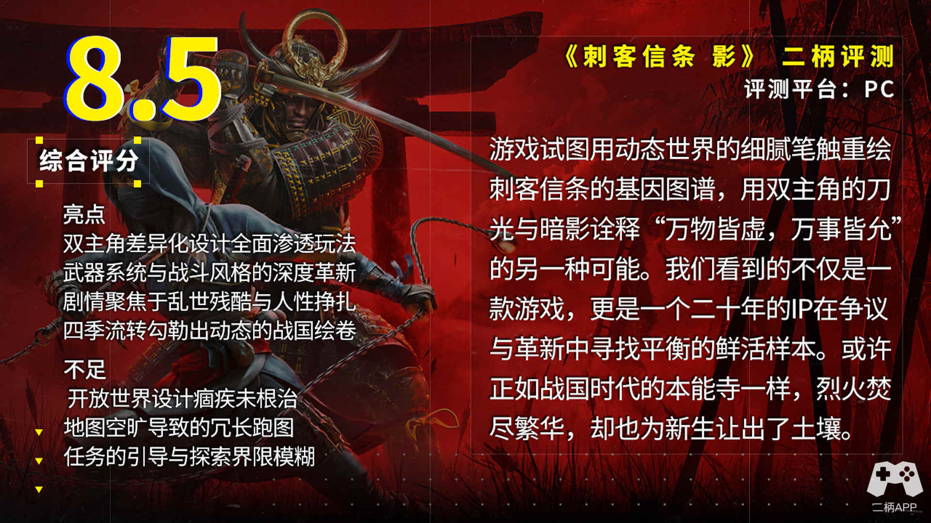 《刺客信条:影》二柄评测8.5分:争议与革新中寻找平衡,一款叛逆又传统的《刺客信条》作品