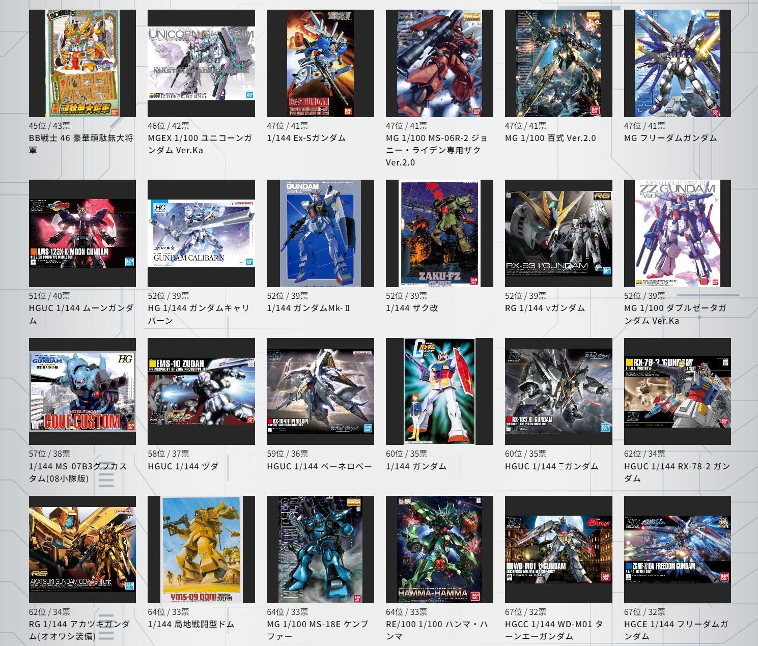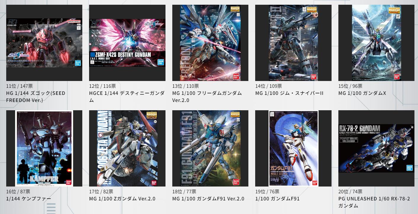 万代公布钢普拉封绘人气投票结果:MGEX强袭自由夺冠