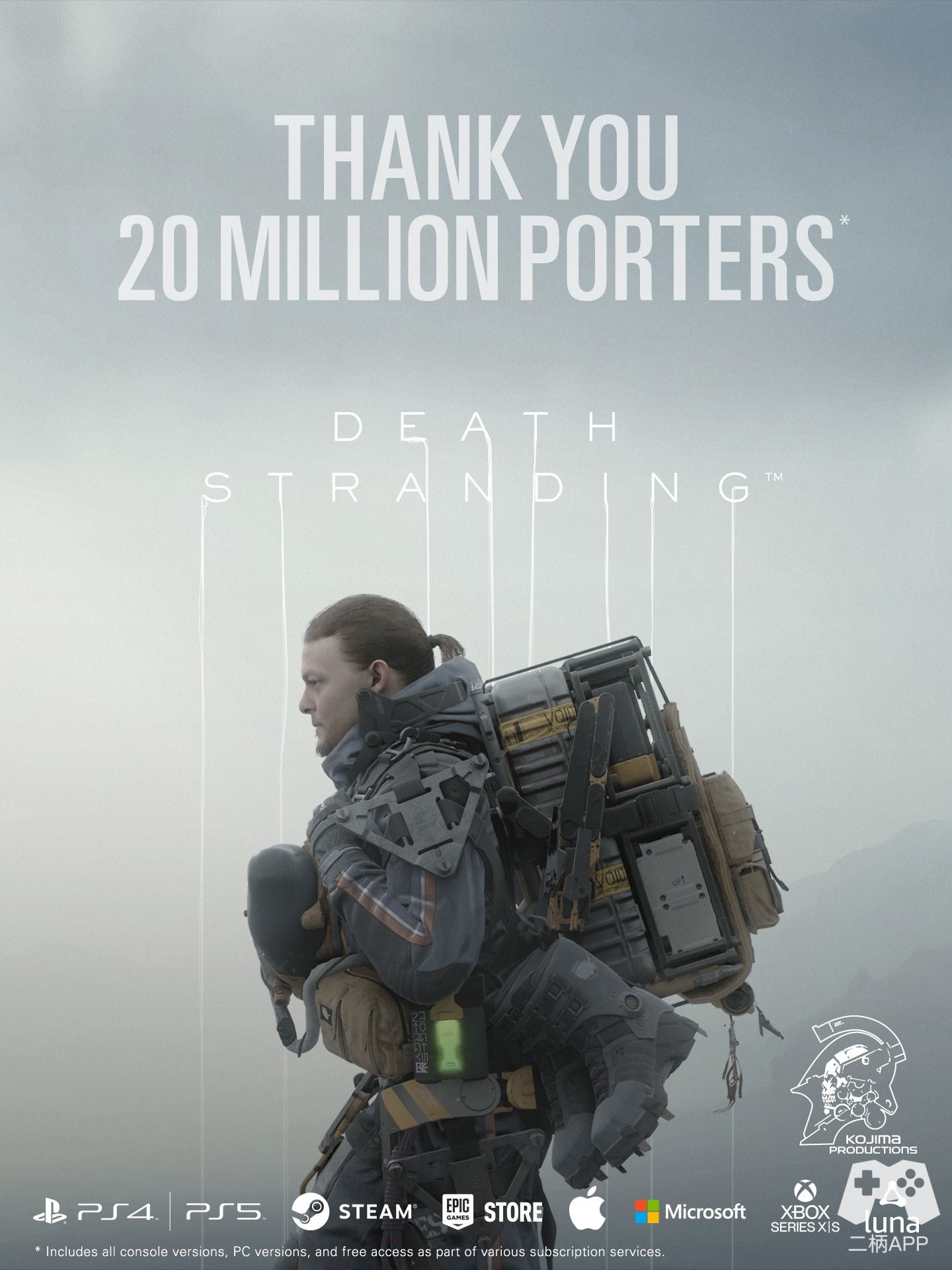 【《死亡搁浅》玩家数突破2000万】小岛工作室宣布,《死亡搁浅》系列累计全球玩家数现已突破2000万(截至2025年3月31日,包括所有销售版本、PC版和各种订阅服务)。本作最初于2019年发售,续作《死亡搁浅2:冥滩之上》将于今年6月26日发售。