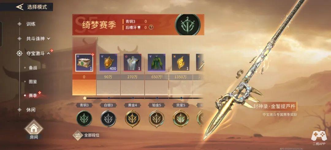 参与「漠海夺金」可赢取限定枪皮肤【封神录·金錾提芦杵】及封神系列武器外观,赛季专属奖励错过不再返场。