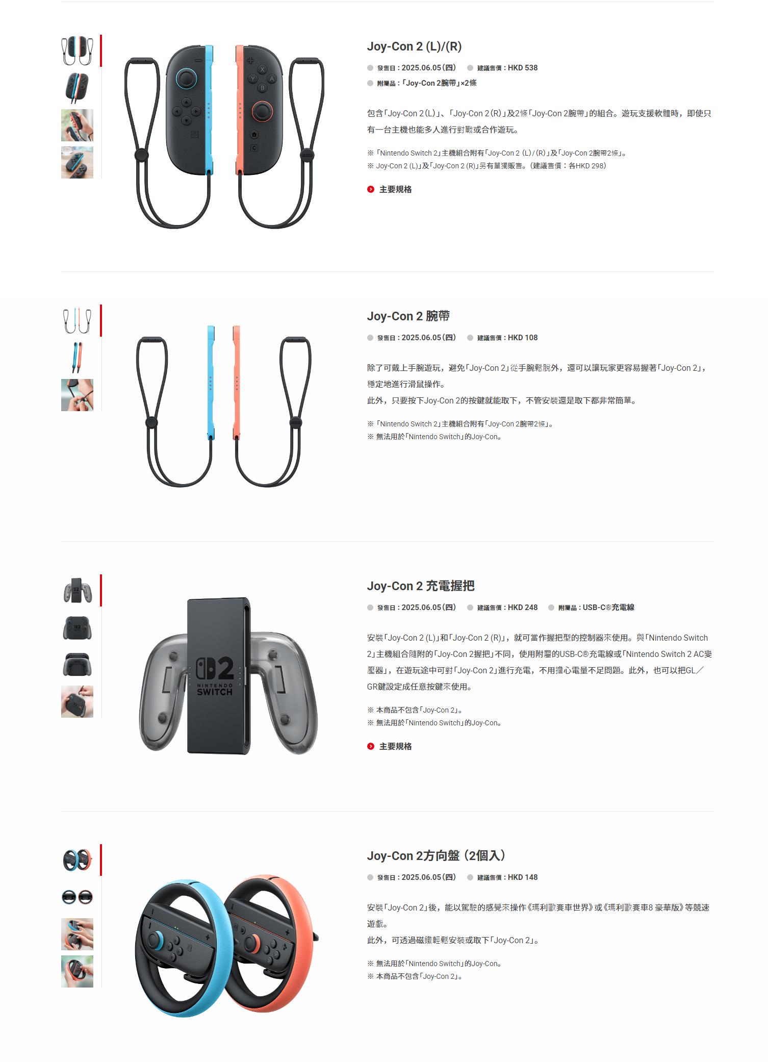 Joy-Con 2腕帶:108HKD,1980日元