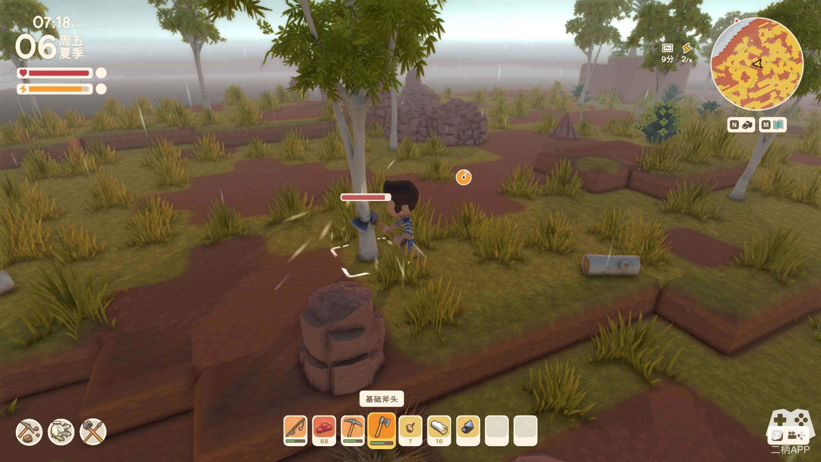 与其它模拟生存类游戏一样,本作秉承着“要致富,先撸树”的理念,在初登小岛后,玩家要尽可能的通过伐木,凿石来收集基本的材料,再用这些基础材料打造出更高级的物品,虽然前期收集材料的过程可能略显乏味,但好在游戏提供了丰富的物品制作项,光是桥的种类就多达数十种,后期更是有滑翔翼,农作物收割机等高级物品,而这些可以给予玩家一定的资源收集驱动力,也会增加玩家的建设取得成效后的成就感。