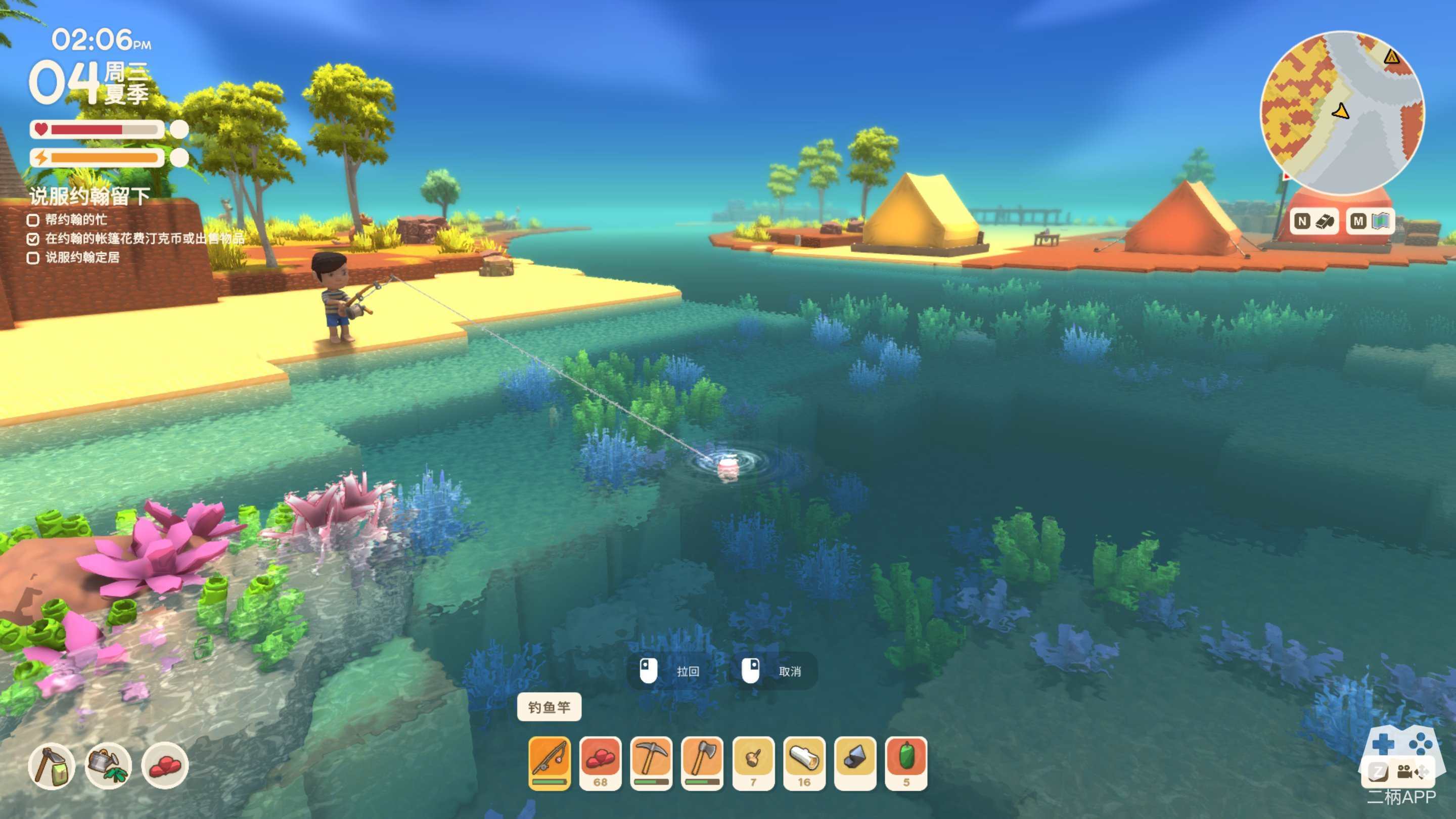 在忙碌的小镇建设中,玩家也可以选择做一些休闲活动,例如钓鱼种田,抓抓蝴蝶,哪怕在雨中漫无目的地散步,呆坐在河边一整天,在游戏中也不会有人来催你该干正事了,有时候,彻底放空自己也不失为一个好选择。