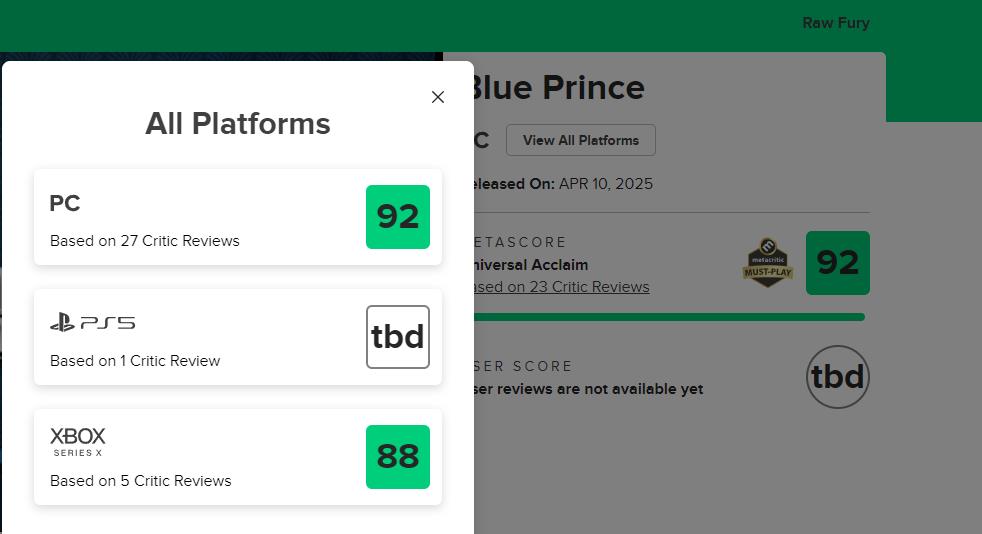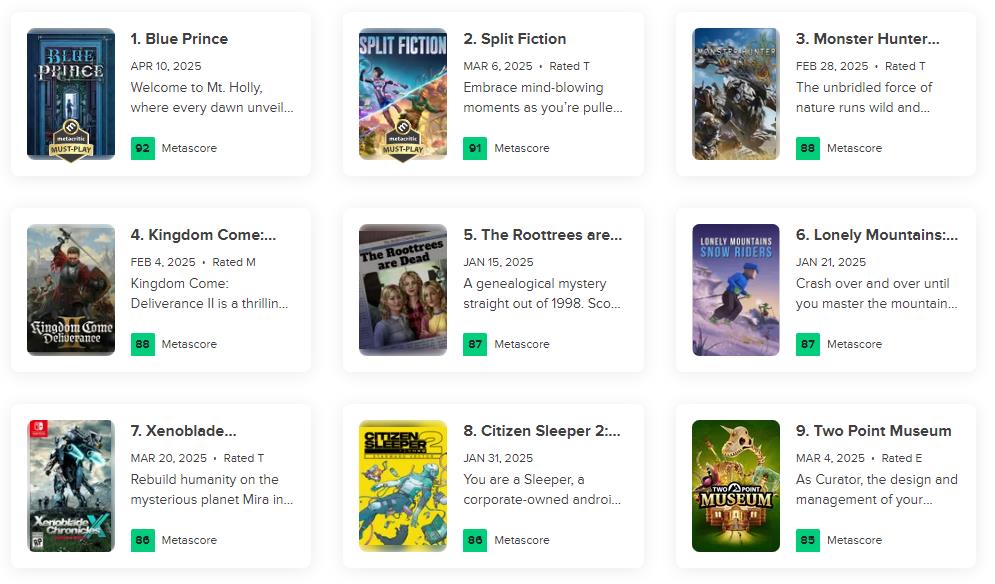 解谜游戏《蓝途王子》MC 开分92,暂为2025年最高分作品