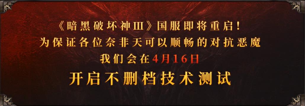 《暗黑破坏神3》国服即将重启,4月16日开启技术测试
