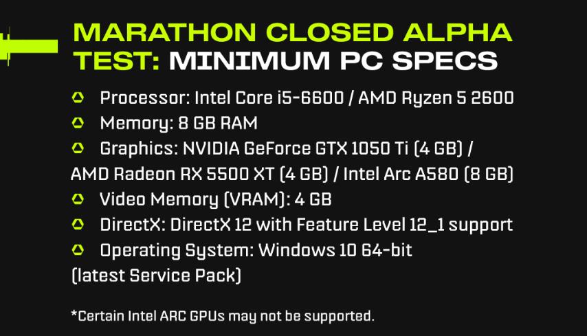【《失落星船:马拉松》测试版PC最低配置要求公布】Bungie科幻射击撤离游戏《失落星船:马拉松》将于本月23日开启测试。目前游戏测试版的PC最低配置要求公开,具体如下:
