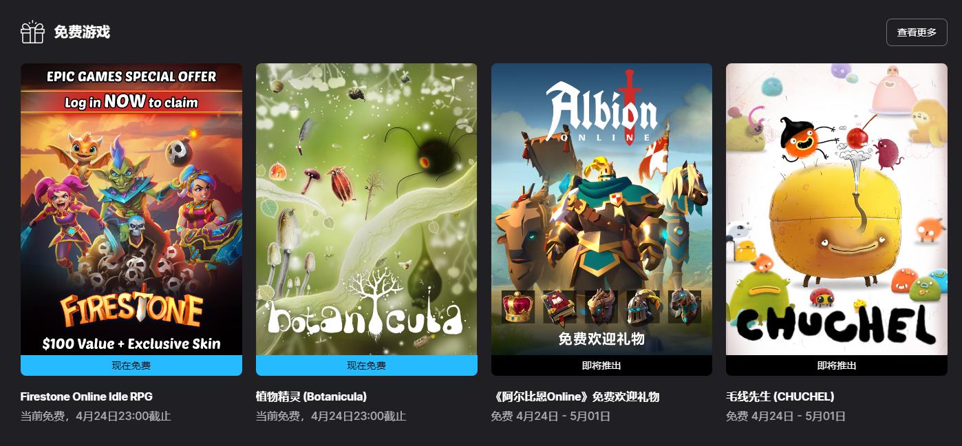 【Epic喜+2】奇幻多人游戏《Firestone Online Idle RPG》和轻松冒险游戏《植物精灵 (Botanicula) 》现已可在Epic商店中免费领取。领取后永久入库,截止时间到4月25日23:00。下周免费游戏为《毛线先生 (CHUCHEL) 》和《阿尔比恩Online》免费欢迎礼物。