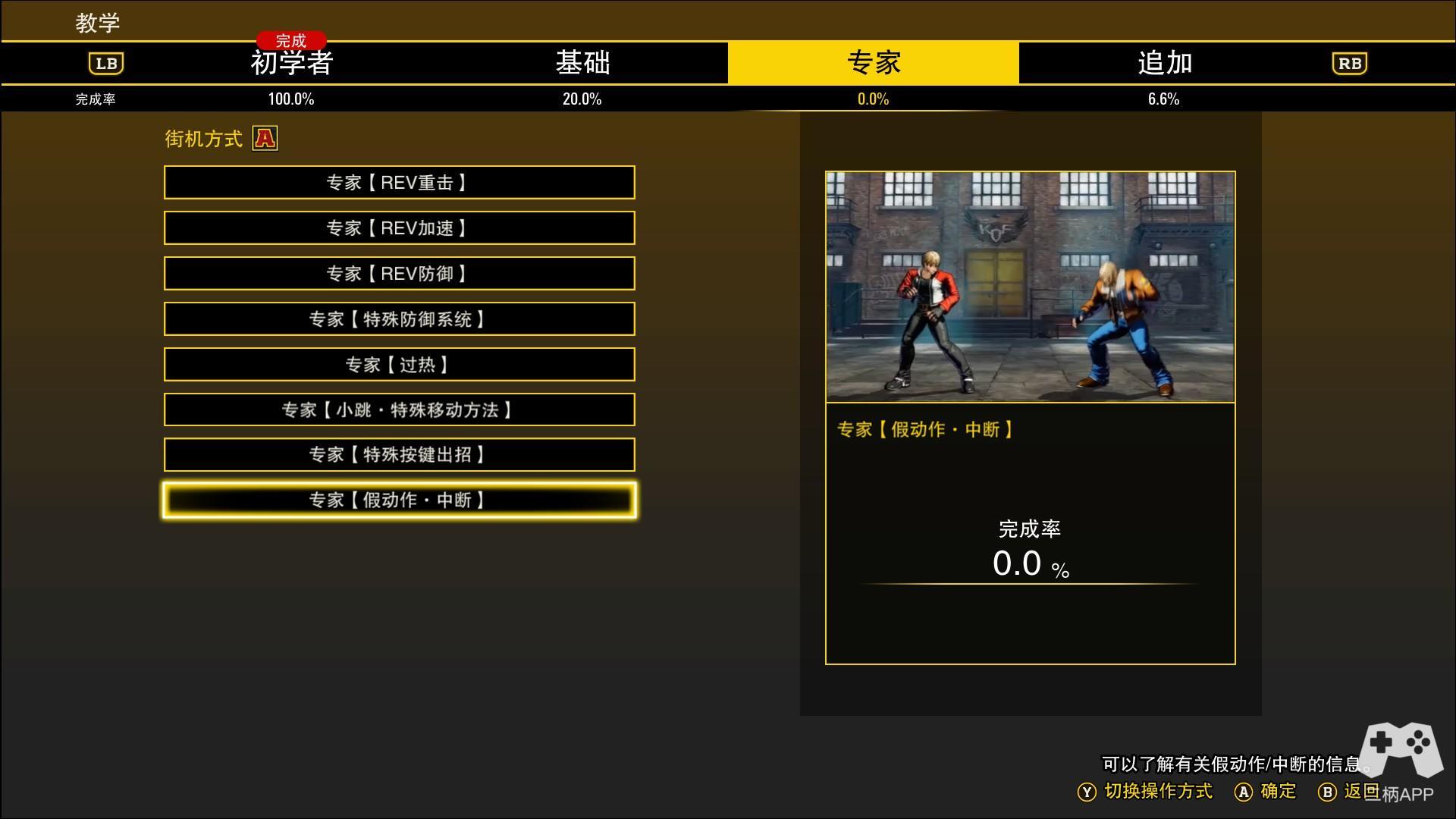 此外,游戏的“训练模式”设计暴露了SNK在用户体验上的短板。与《街霸6》详尽的帧数显示、情景模拟功能相比,《群狼之城》的训练模式仅提供有限的按键功能练习,几乎和浏览按键设置界面没有差异。针对性的惩罚训练或反空中连段模块等项目的缺失,对于渴望精进技术的玩家而言,无疑增加了钻研成本。