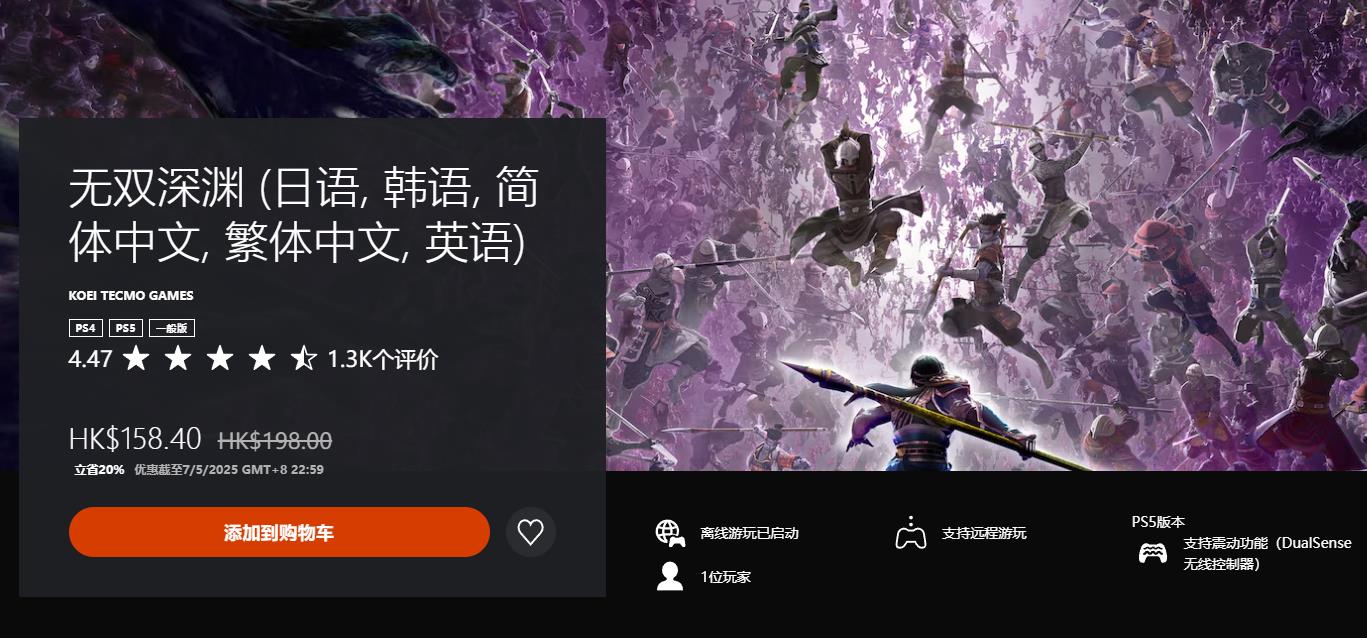 PS商店开启“春天玩乐祭”活动,《无双深渊》等作首次打折