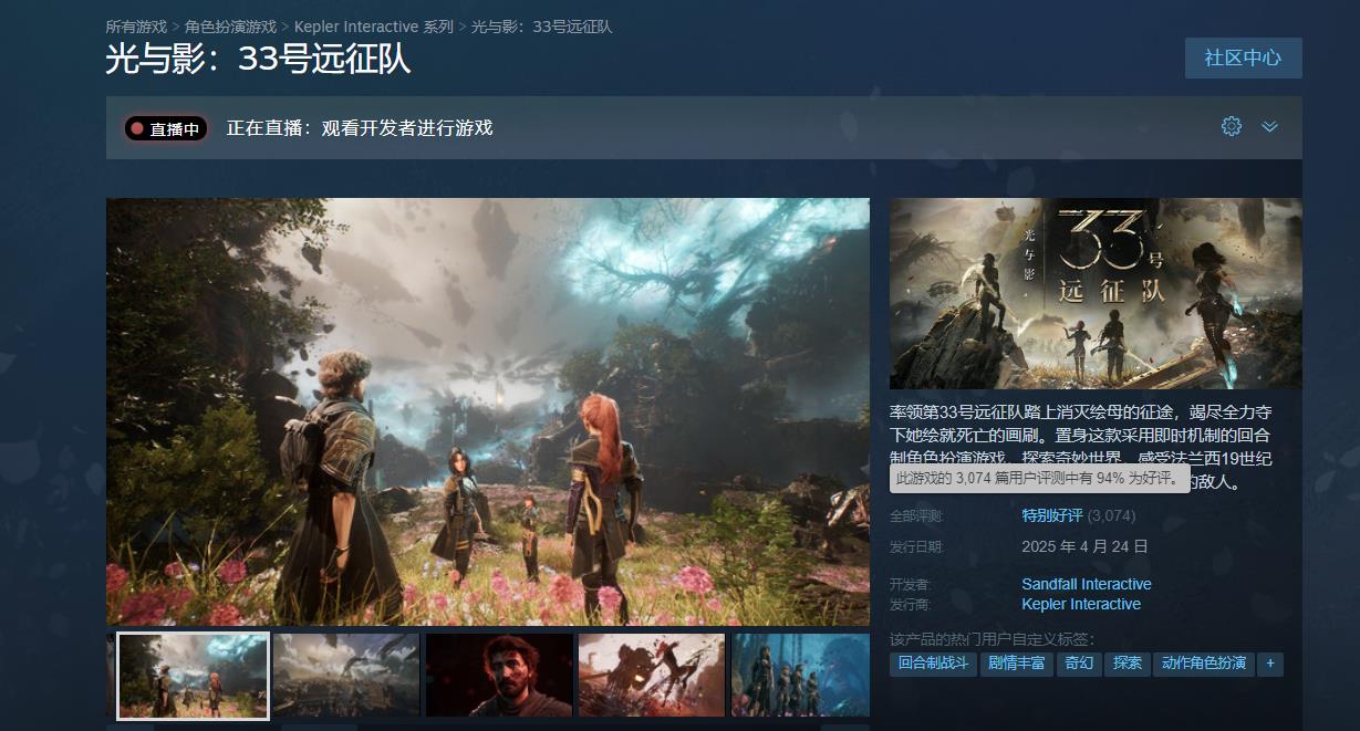 《光与影:33号远征队》Steam上获玩家“特别好评”