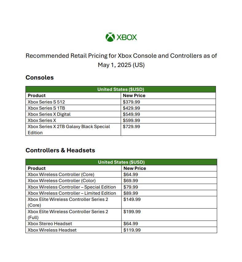 【Xbox Series X调价后新价格已全面超过PS5】微软昨晚宣布了Xbox主机全线涨价的消息。从目前产品美元区的定价来看,Xbox新价格已超过PS5。对比如下: