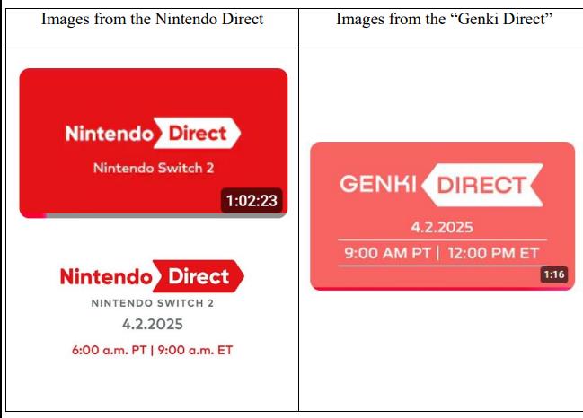 除了泄露内容外,任天堂还控诉其进行虚假宣传。包括Genki将自己包装成“任天堂合作伙伴”、同日的山寨直面会等误导公众的行为,且在此过程中严重侵权了任天堂的商标。