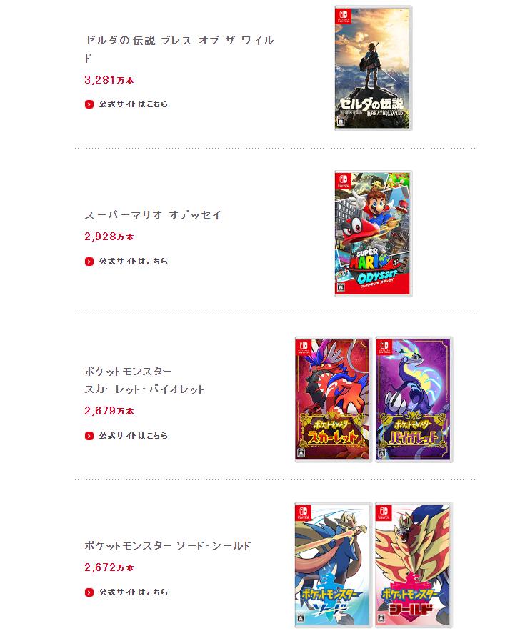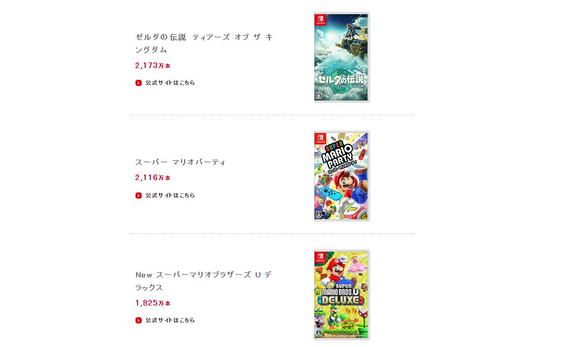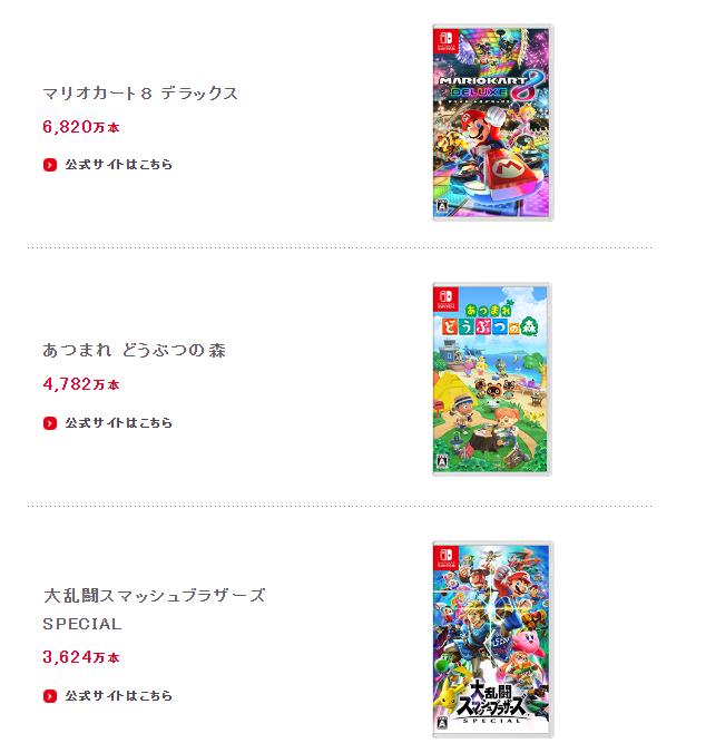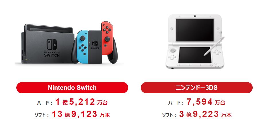 任天堂主机&软件数据更新:NS全球累计销量达1.5212亿台