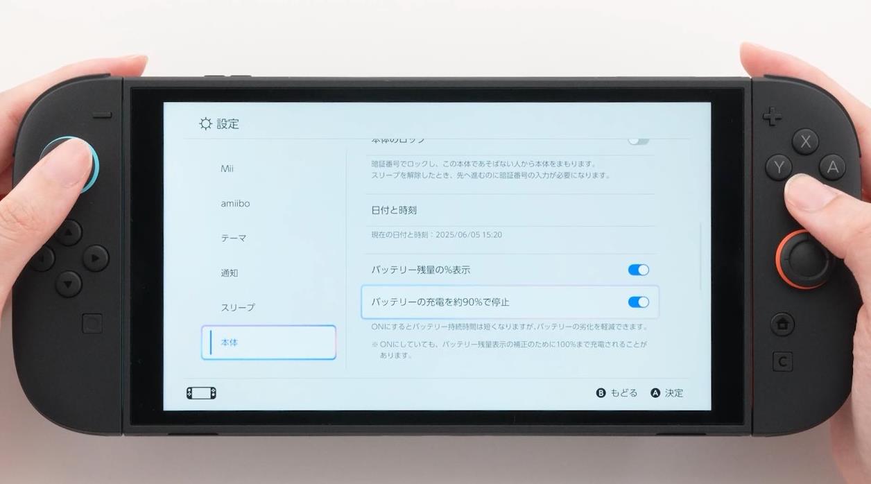 【NS2提供“开屏密码”和“优化电池充电”功能】任天堂在应用程序“Nintendo Today!”中分享了有关NS2电池充电设定的一些信息。在新机NS2上,提供了“约90%时停止充电”选项,它可使电池充电到90%时停止充电,以减少电池的老化。启动后,在电量快达到90%时充电速度会有所减缓。此外,在该演示中还可以看到“系统锁”选项。据描述,玩家可为机器设定开屏密码,不过目前数字位数尚不明确。NS2将于6月5日正式发售。