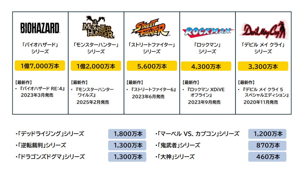 【《生化》《怪猎》断档领先!Capcom十大畅销系列数据更新】Capcom在最新一期的财报中更新了旗下TOP 10游戏系列的数据,具体如下(统计时间截至今年3月末):