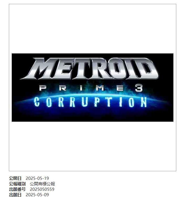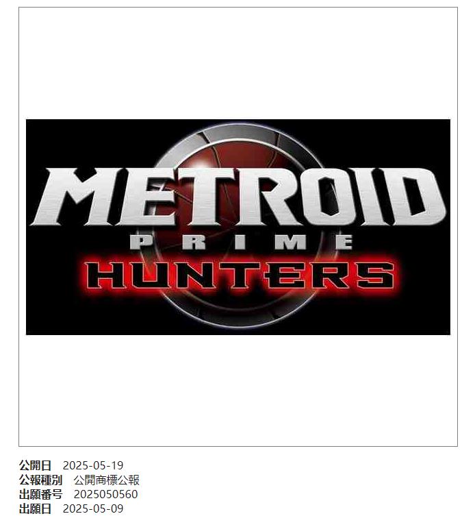 【任天堂为两款《密特罗德》旧作商标注册商标】任天堂在月初为《密特罗德 究极:猎人(Metroid Prime Hunters)》《密特罗德 究极3:堕落(Metroid Prime 3 Corruption)》注册了商标,并于今日在日本特许厅官网上公开。