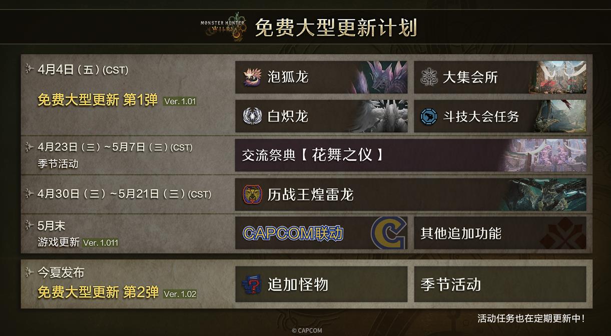 《怪物猎人:荒野》于今年2月在PS5/Xbox Series/Steam上推出。游戏免费大型更新第一弹(包括泡狐龙、大集会所等内容)也已上线。根据预告显示,本作第二弹更新预计会在今年夏季到来,届时海龙或将登场!