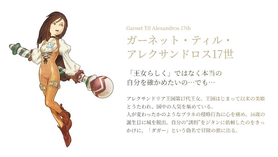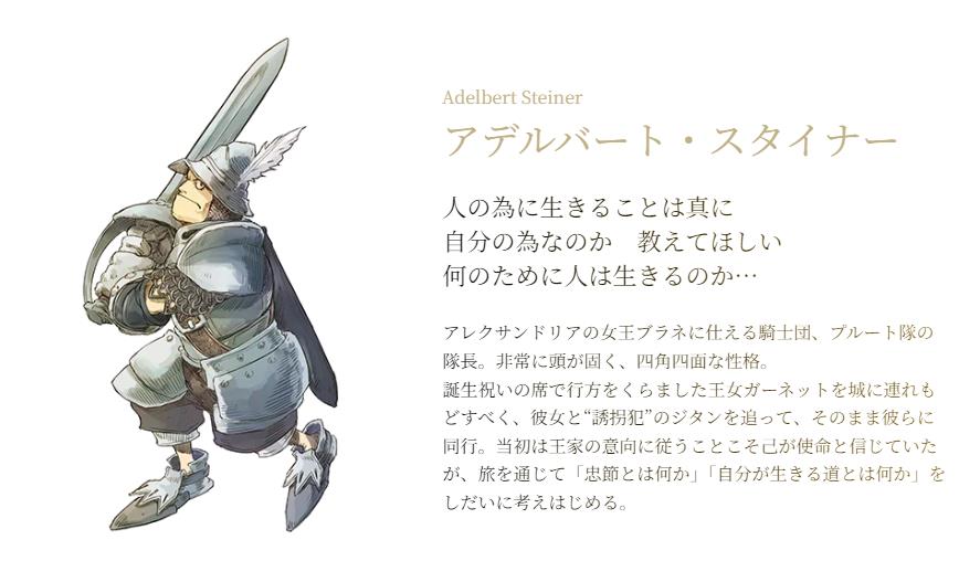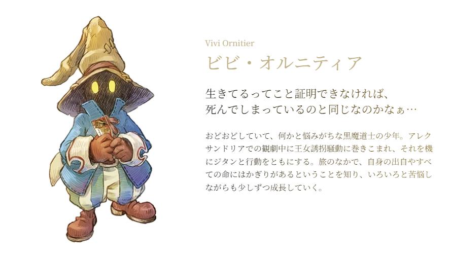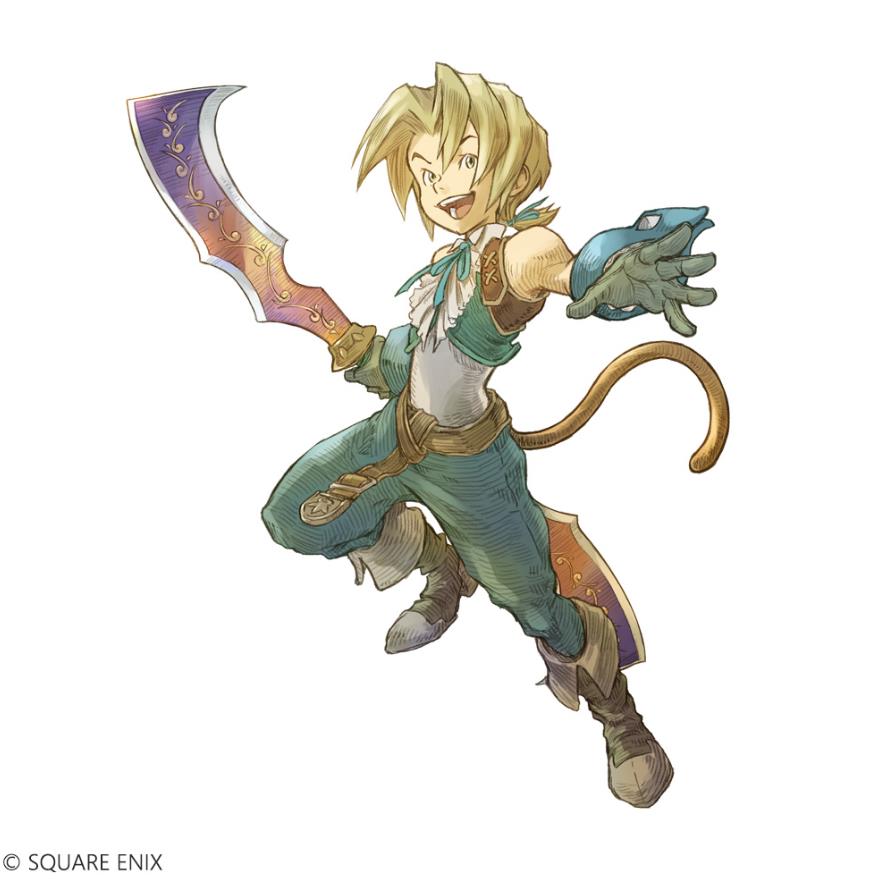 【《最终幻想9》25周年纪念网站更新角色信息】SE在今年早些时候开通了《最终幻想9》25周年纪念网站。近日该网站更新了游戏中“吉坦”“加奈特”“比比”“阿德尔伯特”四位主要人物的相关介绍,角色立绘由设计师板鼻利幸所制。