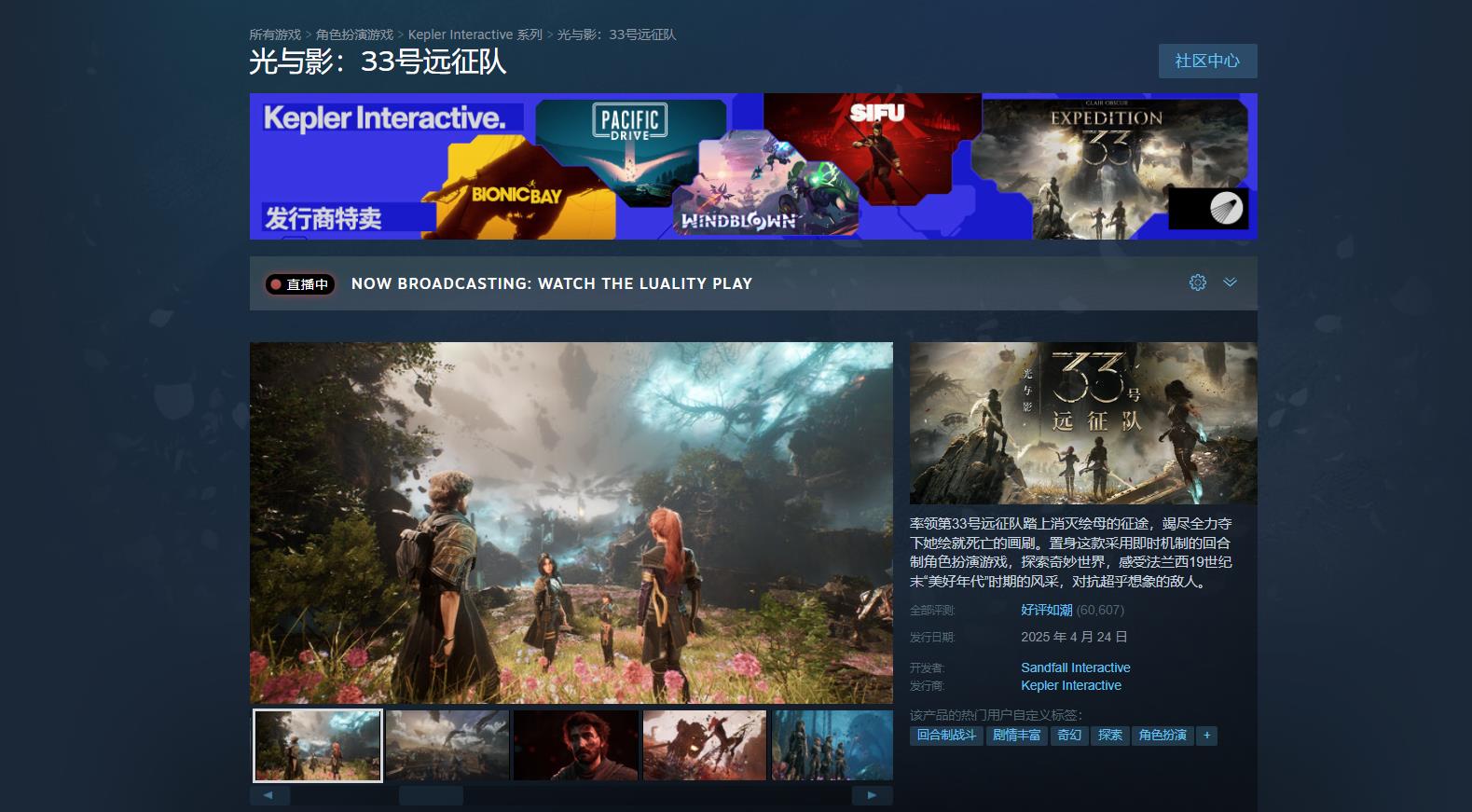 【《光与影:33号远征队》Steam玩家评价现已升至“好评如潮”】由法国游戏工作室Sandfall Interactive所带来的角色扮演游戏《光与影:33号远征队》自上月推出后,便获得了媒体和玩家们的一致好评。目前,本作在Steam上的玩家好评率达95%(总评数60607),已从原来的“特别好评”提升至“好评如潮”。《光与影:33号远征队》现已登录PS5、Xbox Series、PC。游戏上市12天,全球累计销量突破200万份。