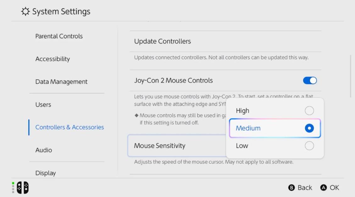 Joy-Con 2支持鼠标灵敏度调节