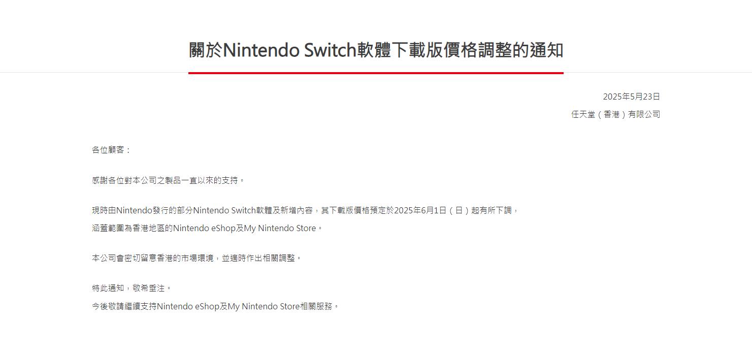 【任天堂将下调部分第一方NS数字版游戏的售价】任天堂HK宣布,将于6月1日起,下调部分由任天堂发行的数字版NS游戏(及拓展内容)的售价!覆盖范围为中国香港地区Nintendo eShop及My Nintendo Store。