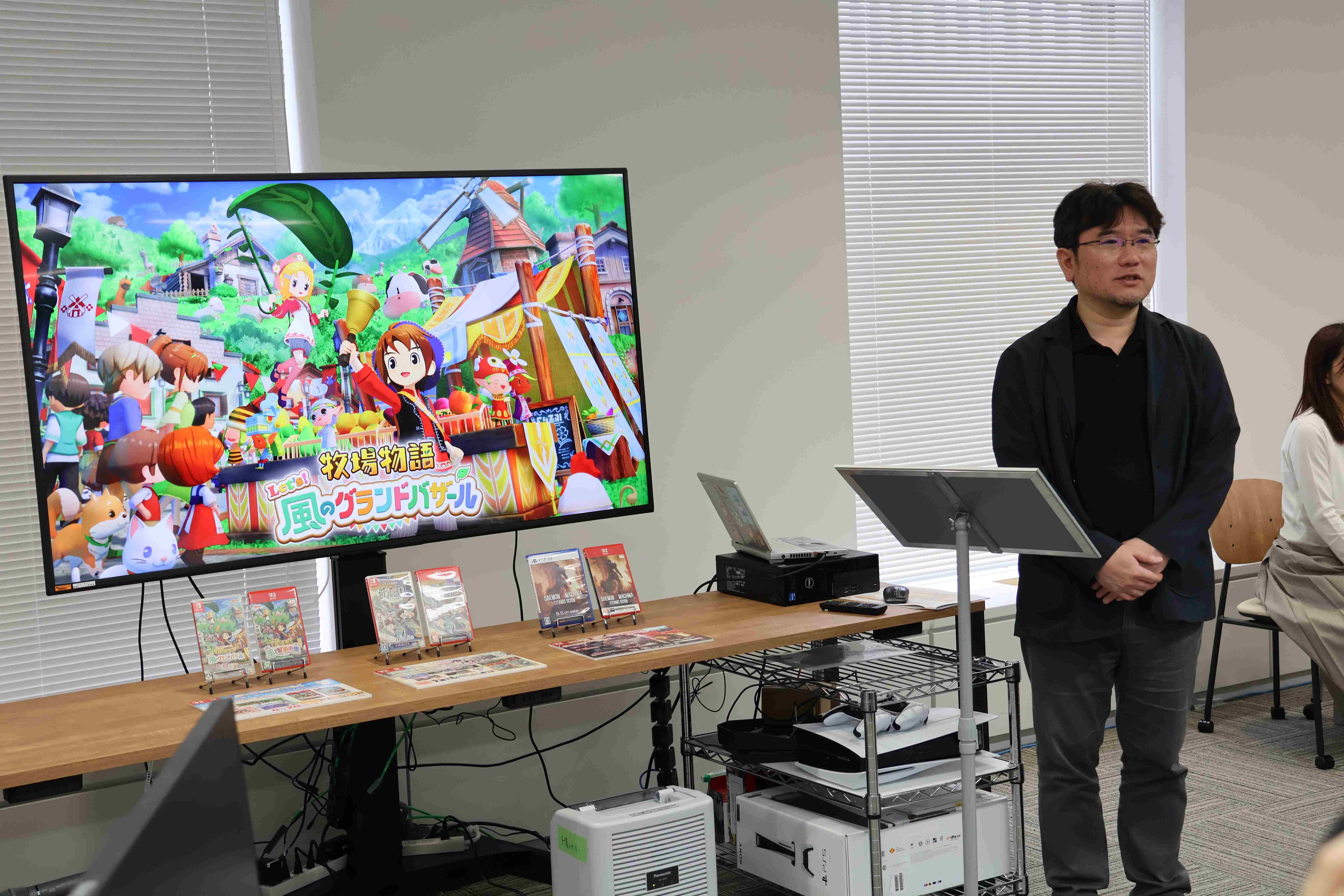 三款游戏的制作人与总监全部到场,并分别有一位向我们介绍了游戏的主要玩法。《符文工房》总监前川司郎,《牧场物语》制作人中野魅,《机甲战魔》制作人佃田健一郎登台解说。每款游戏均提供90分钟的超长体验时间,体验平台为Switch(《符文工房》《牧场物语》)和PC(《牧场物语》《机甲战魔》),我们也会在后续分享这些游戏的游玩体验。