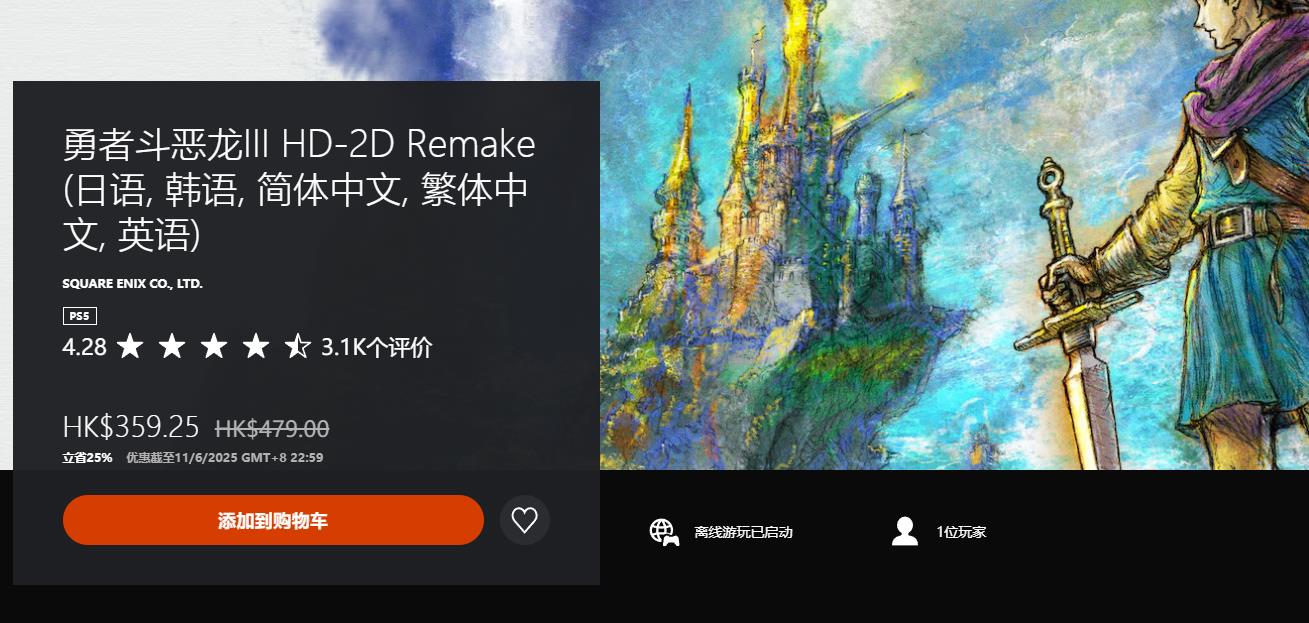 《勇者斗恶龙3:HD-2D重制版》359.25HKD(首次打折)