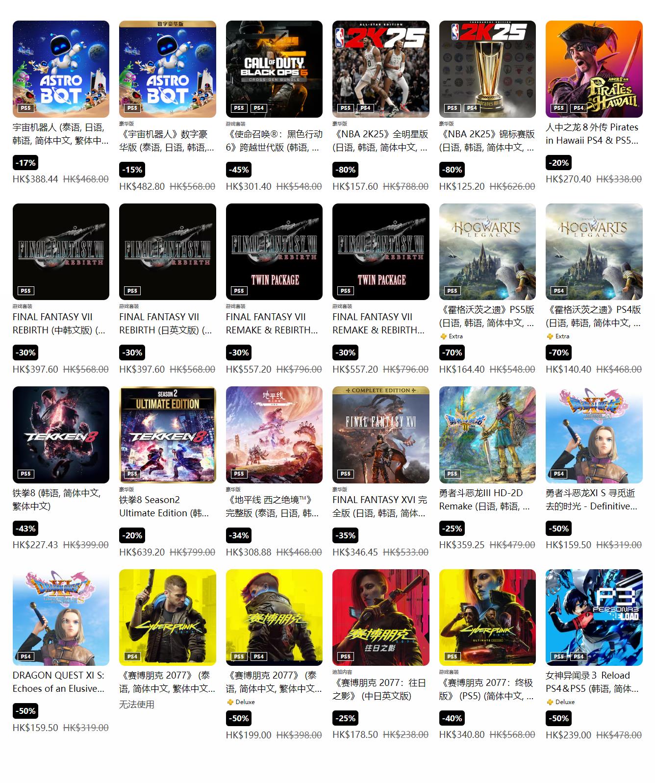 【PS HK商店年中大促“DAYS OF PLAY”今日开启】PS HK商店今日开正式开启了“DAYS OF PLAY”活动,其中诸多游戏史低促销中。人气作品包括: