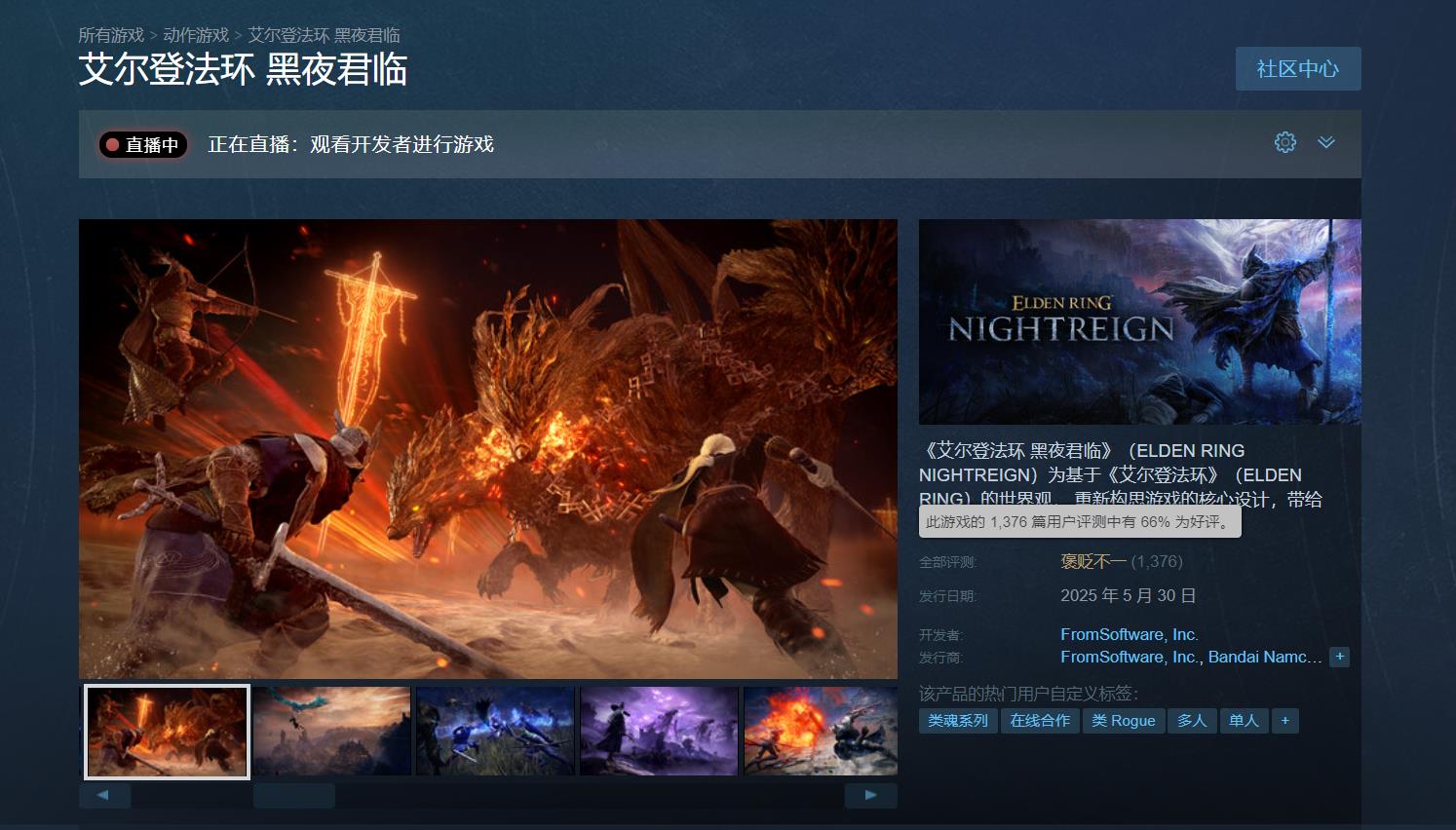 《艾尔登法环:黑夜君临》Steam上获评“褒贬不一”