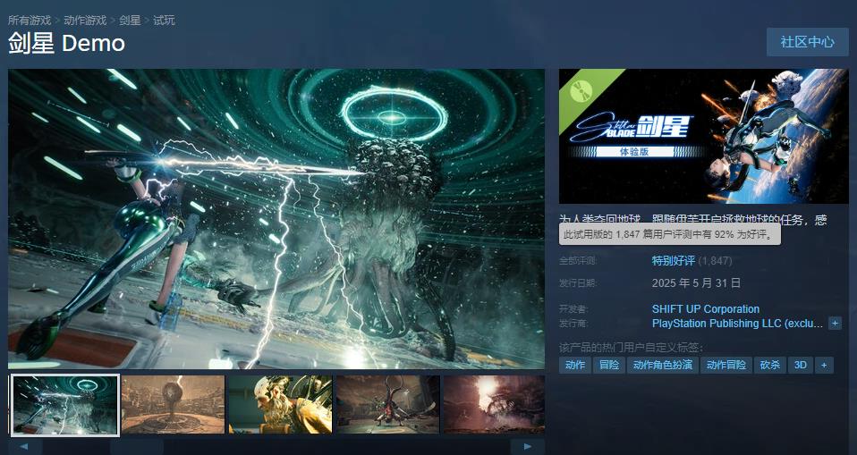 此外,《剑星》PC版Demo也已发布,该试玩版目前在Steam上已有的1847篇评测中好评率92%,总体评价“特别好评”。试玩版可体验游戏的首个关卡,存档可在正式版中使用。