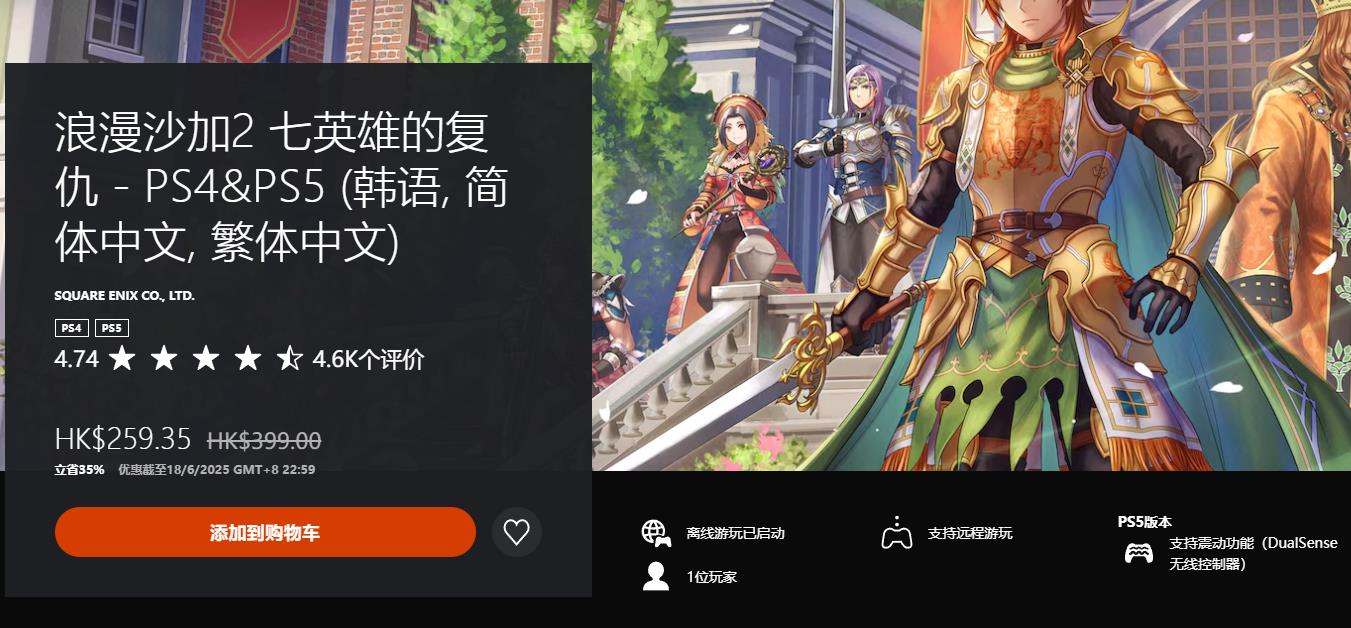 《浪漫沙加2:七英雄的复仇》259.35HKD(新史低)