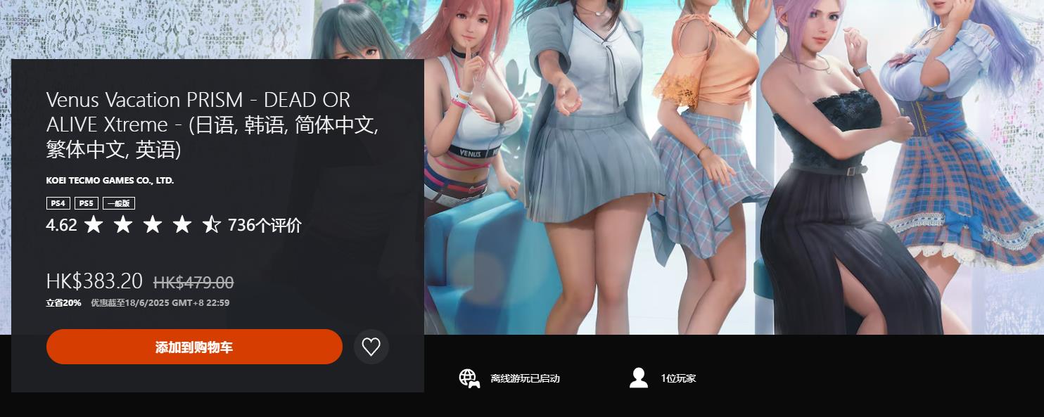 《维纳斯璀璨假期:死或生XTREME》383.2HKD(首次打折)