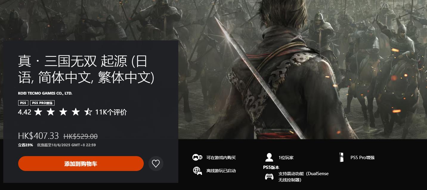 【PS商店开启夏日游戏节优惠活动:《真三起源》等作新史低】PS HK商店今日开启了“夏日游戏节”优惠活动,不少作品正在低价促销中。热门游戏包括: