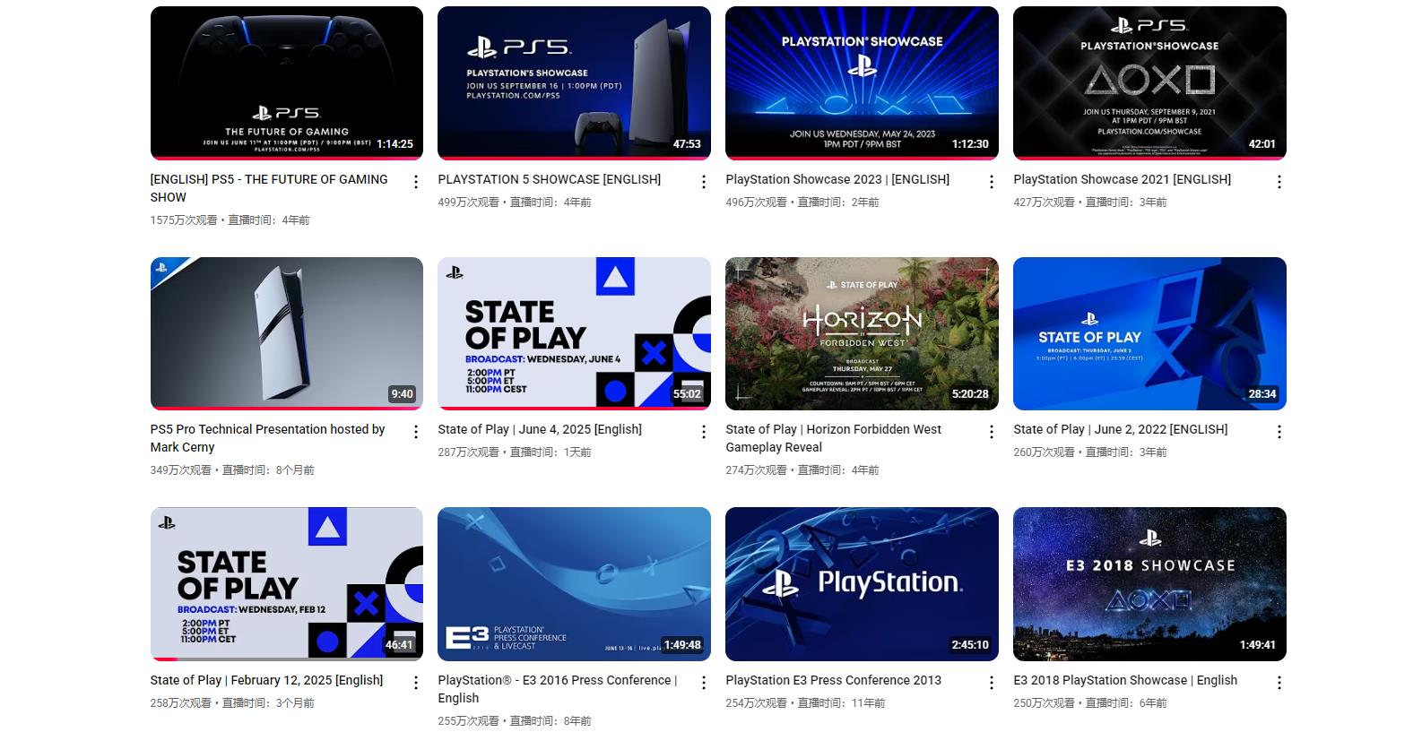 现在观看次数最高的直播活动仍是2020年PS5的“The Future of Gaming”,它以1575万次的成绩断档领先。其次是几场PlayStation Showcase。值得一提的是,State of Play近年来的影响力似乎也在逐渐加强,今年2月的SOP也有着258万次的观看数。