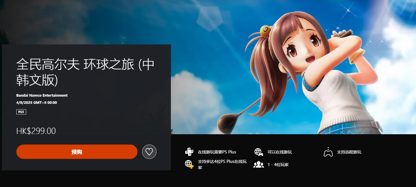 此次追加了更简洁的新操作方式(原来的仍保留),并导入了时间&天气变化系统。游戏支持多人游玩,也可通过网络进行联机,但不支持跨平台游戏。《全民高尔夫:环球之旅》PS5版已开启预约,售价299HKD,支持中文。