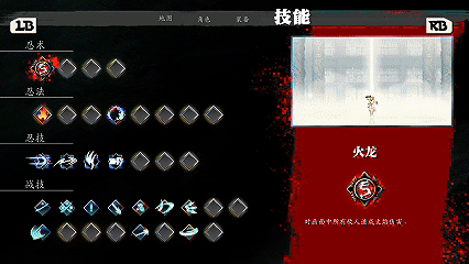 36种技能构成了一个自由度极高的组合系统,玩家可以根据自身偏好选择偏向近战连击、远程骚扰、空中连段、机动位移、范围清场等不同流派。比如你可以用轻攻击起手,接上腾旋绕到敌人身后,再用重攻击破防,最后衔接“忍杀”一击斩落群敌。如果遭遇敌人围剿,疾影闪与瀑返便可助你巧妙脱身。而当敌潮汹涌,火龙一出,四野皆静。