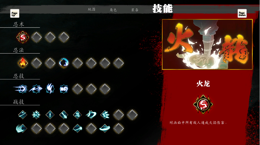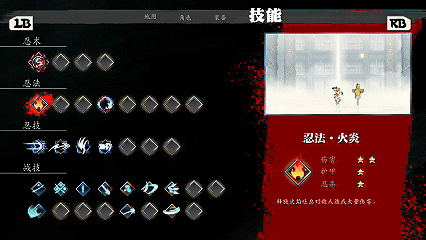 游戏中的技能系统被细致划分为四大类:战技、忍技、忍法、忍术。每类技能在使用方式与战术定位上都各具特色,相互搭配之下可以创造出风格迥异的战斗流派。