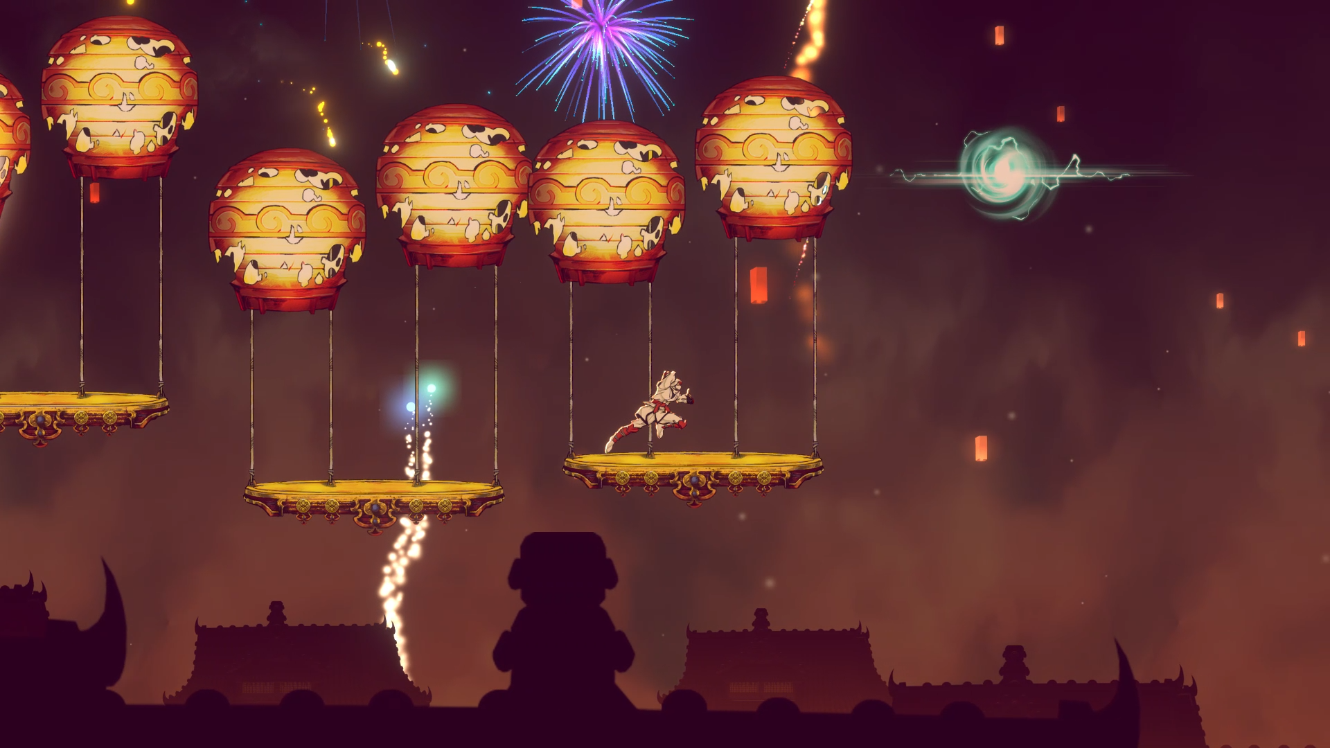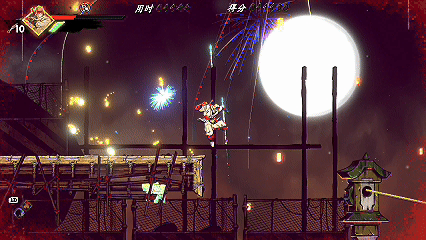 让我印象最深的,是灯会关卡中那段长绳索滑行段落。当角色挂上绳索飞跃夜空,明亮的月色与盛放的烟花在背景中闪耀,整幅画面就像漫画中的一幕高潮分镜。那一刻,不只是操作上的快感,更是视觉与情绪的双重燃点。