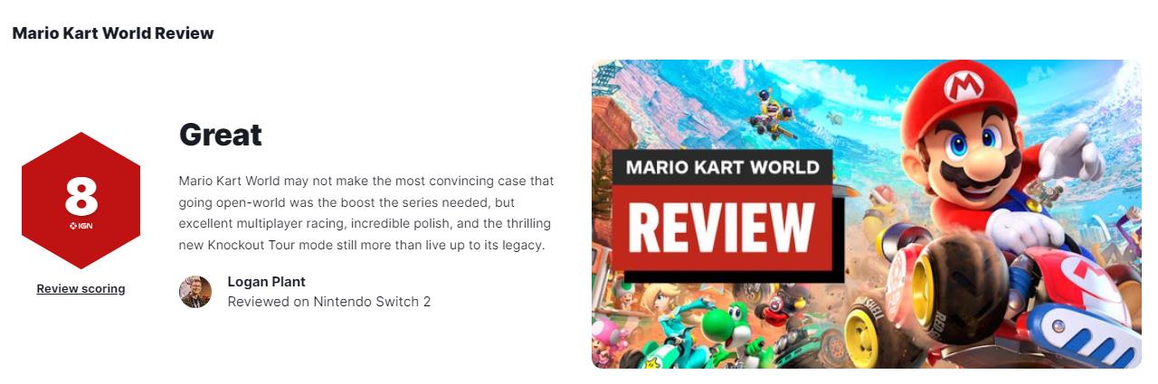 (注:IGN曾为《马力欧赛车8》打出9分,《马力欧赛车8:豪华版》则给出9.3分)