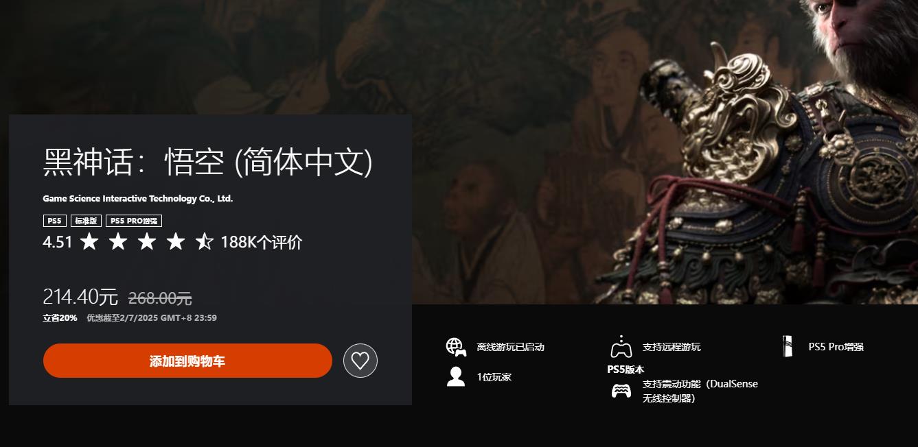 PS商店开启“年中优惠”活动:《黑神话:悟空》首降