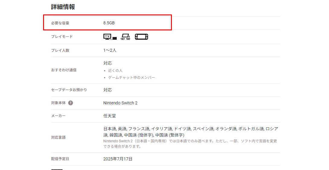 【日常瘦身!《咚奇刚:蕉力全开》压缩至8.5GB】任天堂近日在商店中更新了《咚奇刚:蕉力全开》的容量大小。根据页面信息显示,游戏所需空间已从之前的10.0 GB压缩至8.5 GB。作为对比,《超级马力欧:奥德赛》的容量为5.6 GB。《咚奇刚:蕉力全开》将于2025年7月17日在NS2上推出,其中数字版售价449HKD,实体版499HKD,游戏支持中文。