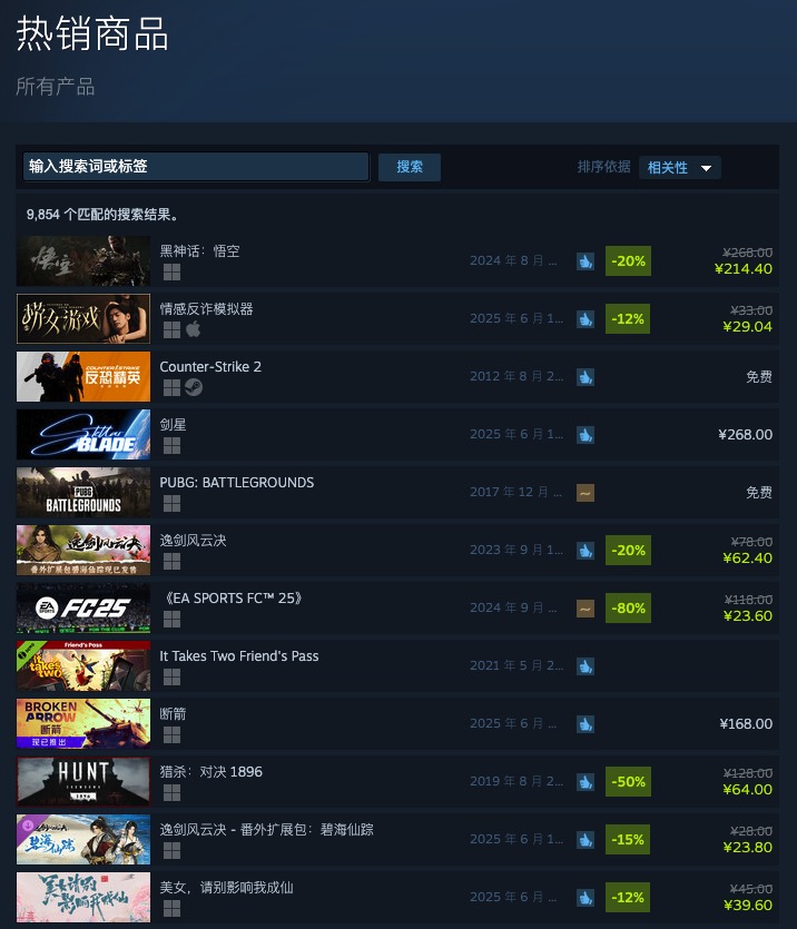《黑神话:悟空》Steam首次开启折扣,登顶国区Steam热销榜