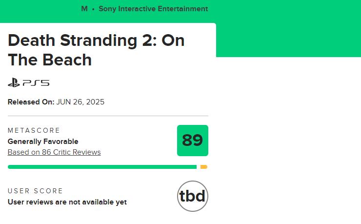 【《死亡搁浅2》MC均分89,获IGN 9分/GS 7分评价】由小岛工作室所带来的《死亡搁浅2:冥滩之上》全球媒体评测现已解禁。截至目前,本作MC上媒体均分89(暂由86家媒体给出)。其中IGN给出9分,GameSpot打出7分评价。