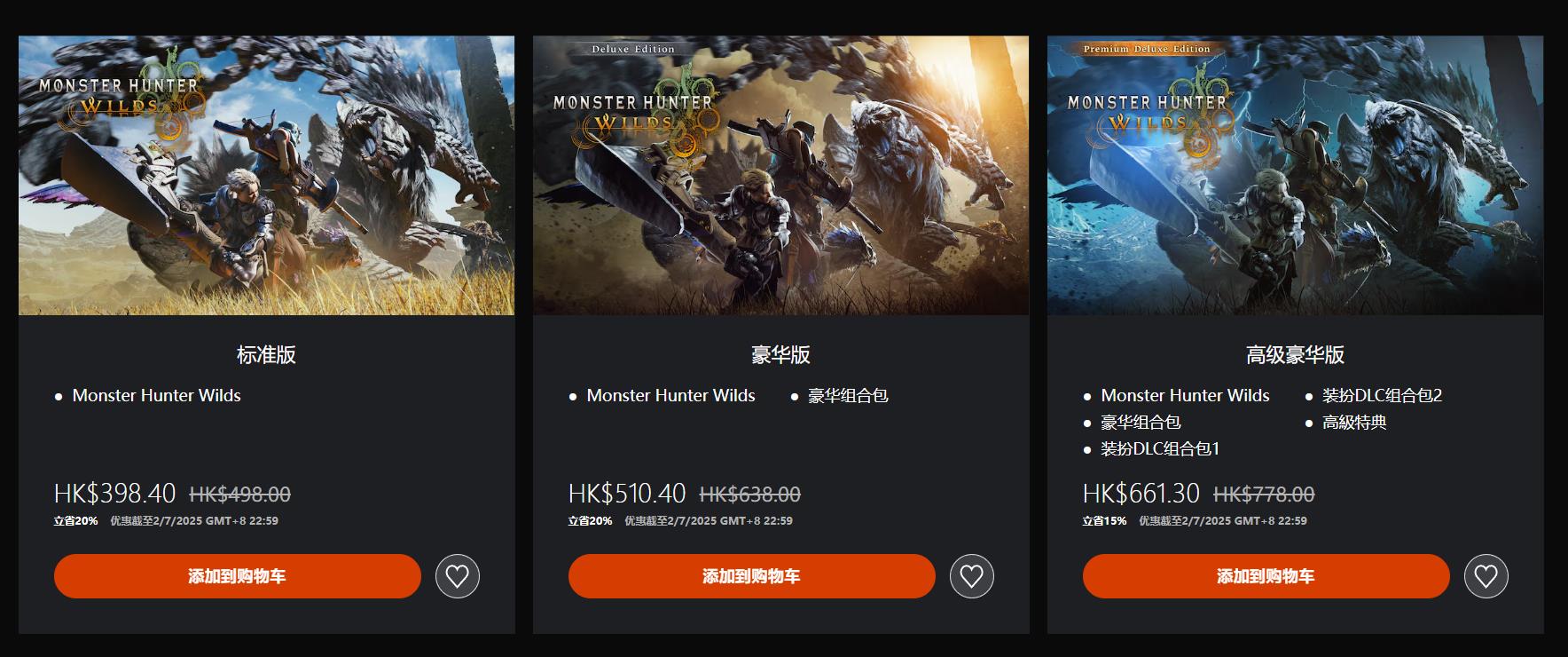 【PS5版《怪物猎人:荒野》迎来首次打折】PS HK商店今日开启了“本周精选优惠”活动,其中Capcom狩猎游戏《怪物猎人:荒野》迎来了首次打折。目前游戏标准版售价(折后)398.4HKD,豪华版510.4HKD,高级豪华版661.3HKD。此次促销的时间截至7月2日22:59。《怪物猎人:荒野》预计会在本月底推出第2次免费更新。
