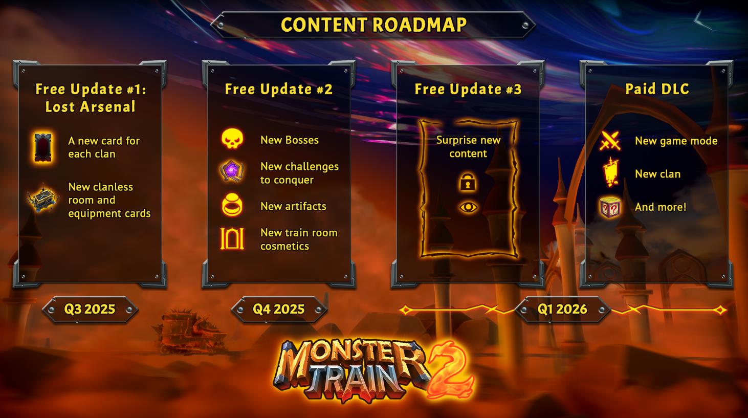 【《怪物火车2》玩家数超50万!官方公布后续更新路线图】于5月发售的肉鸽卡牌游戏《怪物火车2》上市后获得了不错的用户反馈,官方宣布目前本作玩家数已经超过50万。在向粉丝们表达感谢的同时,开发团队还揭晓了游戏后续的更新路线。