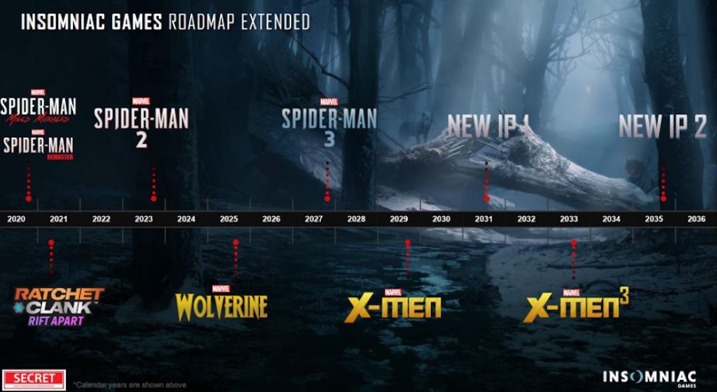 在之前失眠组泄露的文件中可以看到,工作室未来的作品包括《漫威蜘蛛侠3》《X战警》以及新IP等项目。不过鉴于该文件时间过早,不排除有新加内容或改变的可能。