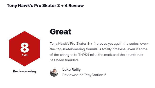 【《托尼霍克职业滑板3+4》MC评分84,获IGN和GS双8分评价】《托尼霍克职业滑板3+4》全球媒体评测现已解禁。本作目前在MC上的媒体均分84(目前评测主要集中在PS5平台上,暂收录了12家媒体),其中IGN和GameSpot均给出8分。