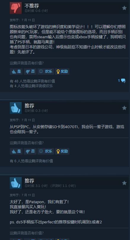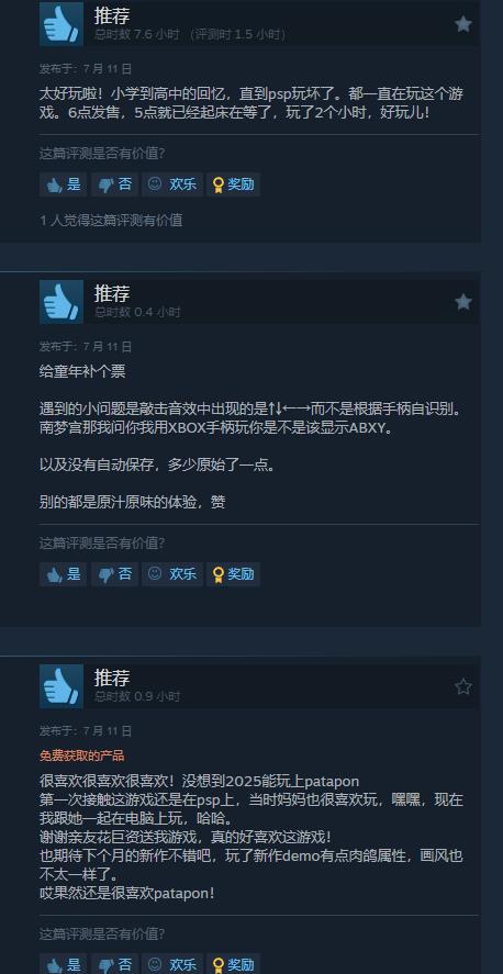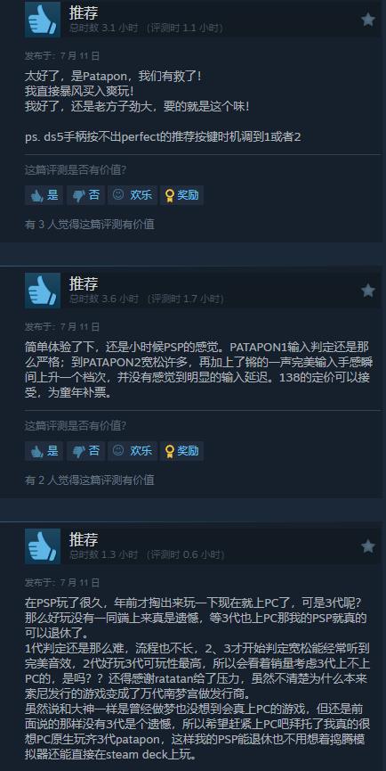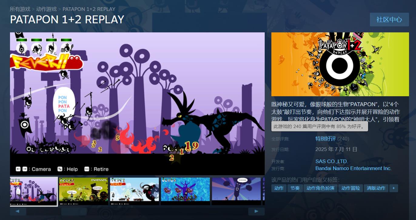 【《啪嗒砰1+2:复刻版》Steam上获玩家“特别好评”】经典节奏游戏《啪嗒砰1+2:复刻版》已于今日登录Steam。截至目前,本作在该平台上已有240条玩家评价,其中好评率85%,整体为“特别好评”。国区42篇,好评率76%。不少玩家给出好评,并表示给童年补上了一张票。不过也有用户因手柄识别等问题给出差评。《啪嗒砰1+2:复刻版》支持控制器与键盘操作,Steam版国区售价138元,游戏支持中文。