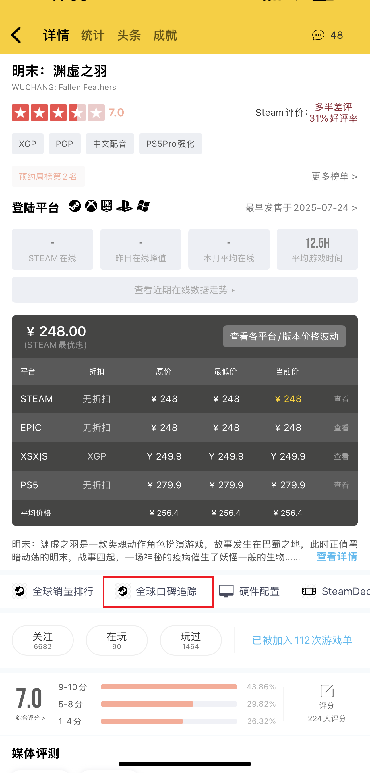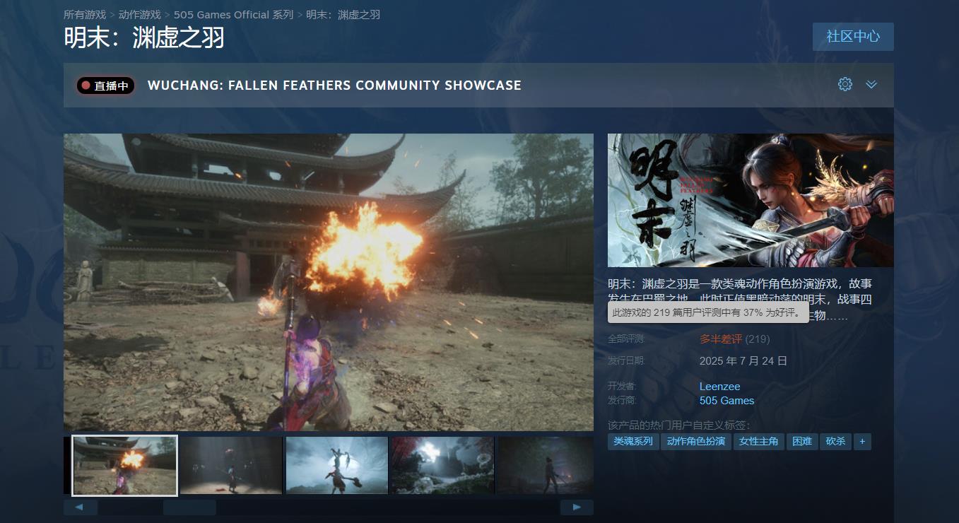 《明末:渊虚之羽》首发Steam好评率37%,暂“多半差评”